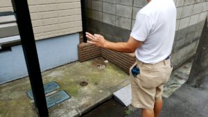 一軒家様のお庭にある植木、プランター、土、レンガ