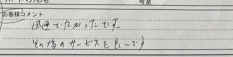 作業、対応につきましてお客様から感謝の声、