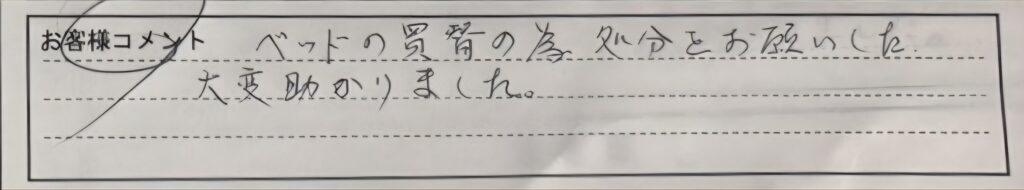 > 「ベッドの買い替えのため処分をお願いした。大変助かりました。」